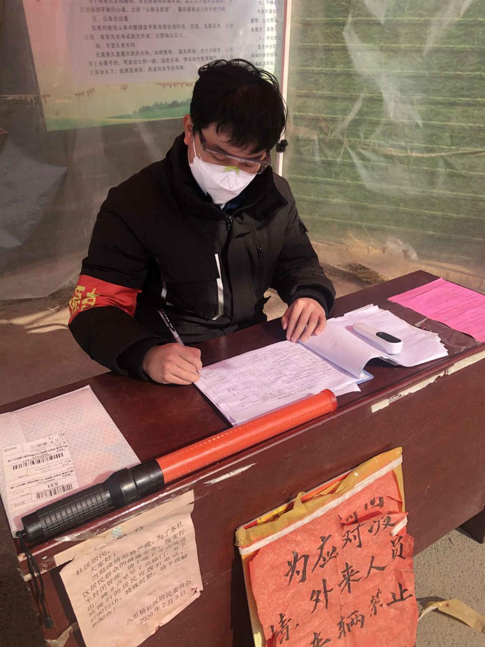 根據(jù)居委會(huì)安排,柴楠每天在社區(qū)出入口進(jìn)行詢問(wèn)登記、測(cè)量體溫、疫情宣傳、人員排查等工作。2020年的第一場(chǎng)春雨給疫情防控工作帶來(lái)了更大的難題,他身披雨衣,在刺骨的寒風(fēng)和冰冷的細(xì)雨中一絲不茍的測(cè)體溫、查驗(yàn)身份證、做好信息登記…一忙就是整整一天。